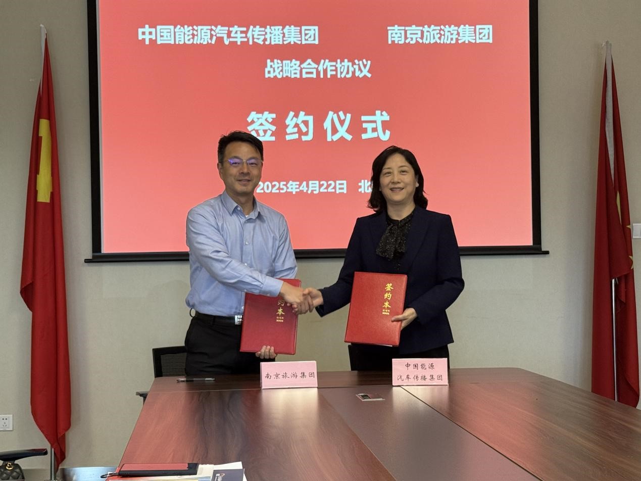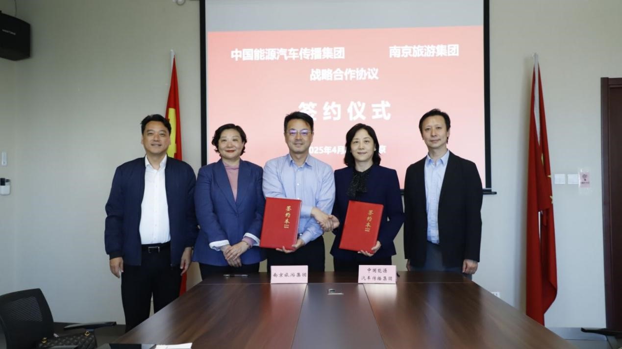2025年4月22日,中國(guó)能源汽車傳播集團(tuán)與南京旅游集團(tuán)在人民日?qǐng)?bào)社新媒體大廈簽署戰(zhàn)略合作協(xié)議。